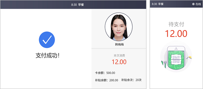 無需操作設(shè)備,設(shè)備根據(jù)餐別時段自動轉(zhuǎn)變金額。食客在設(shè)備上直接刷卡結(jié)算。